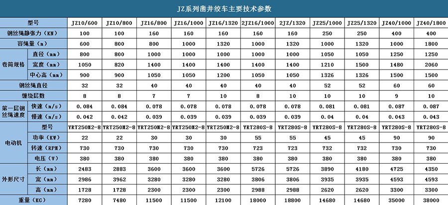 JZ系列穩(wěn)車(穩(wěn)盤絞車、鑿井絞車)有快慢兩種工作速度,在百分之五十以上載荷情況下,只能用慢速進行工作,在百分之五十以下載荷可用快、慢兩種速度工作。